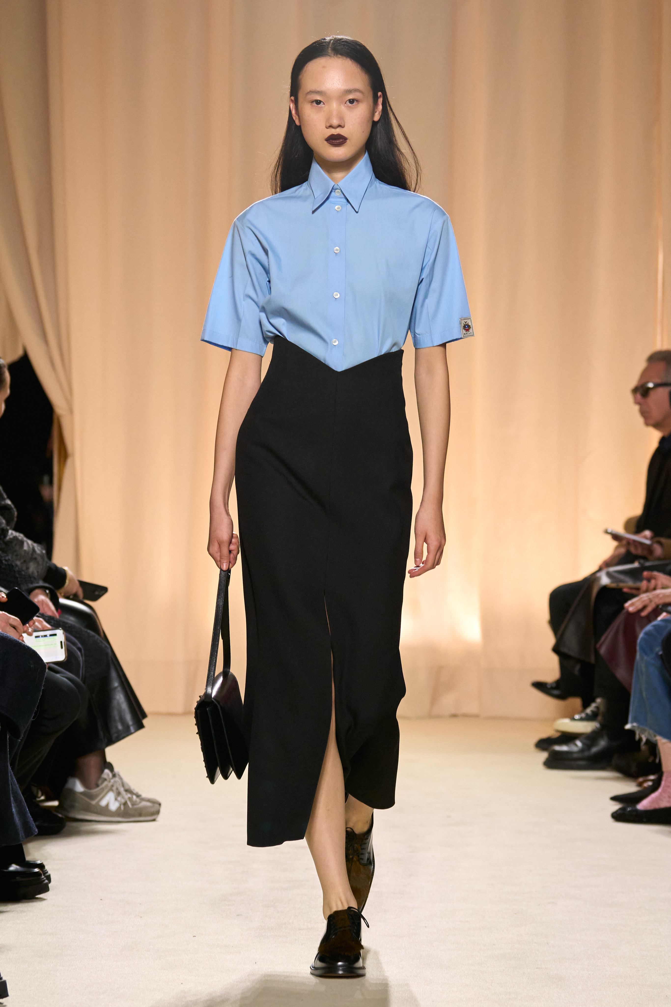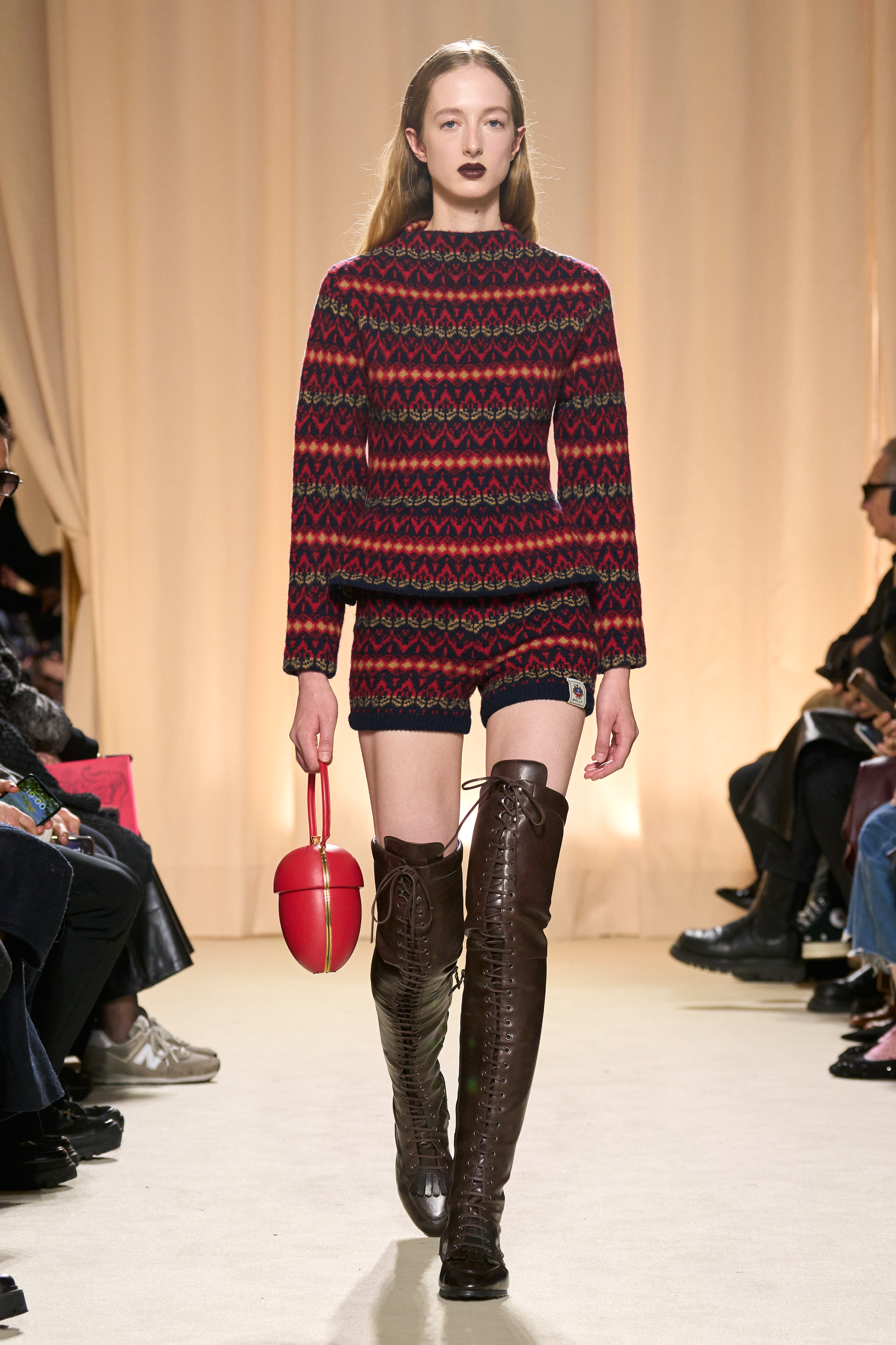 Bellotti’s vision for Bally this season unfolds as a polyphonic symphony, blending textures and silhouettes inspired by both Switzerland’s rural and urban landscapes. The collection unfolds as a crescendo, starting in the raw wilderness and seamlessly transitioning to the rational urbanity, merging the primal with the polished.