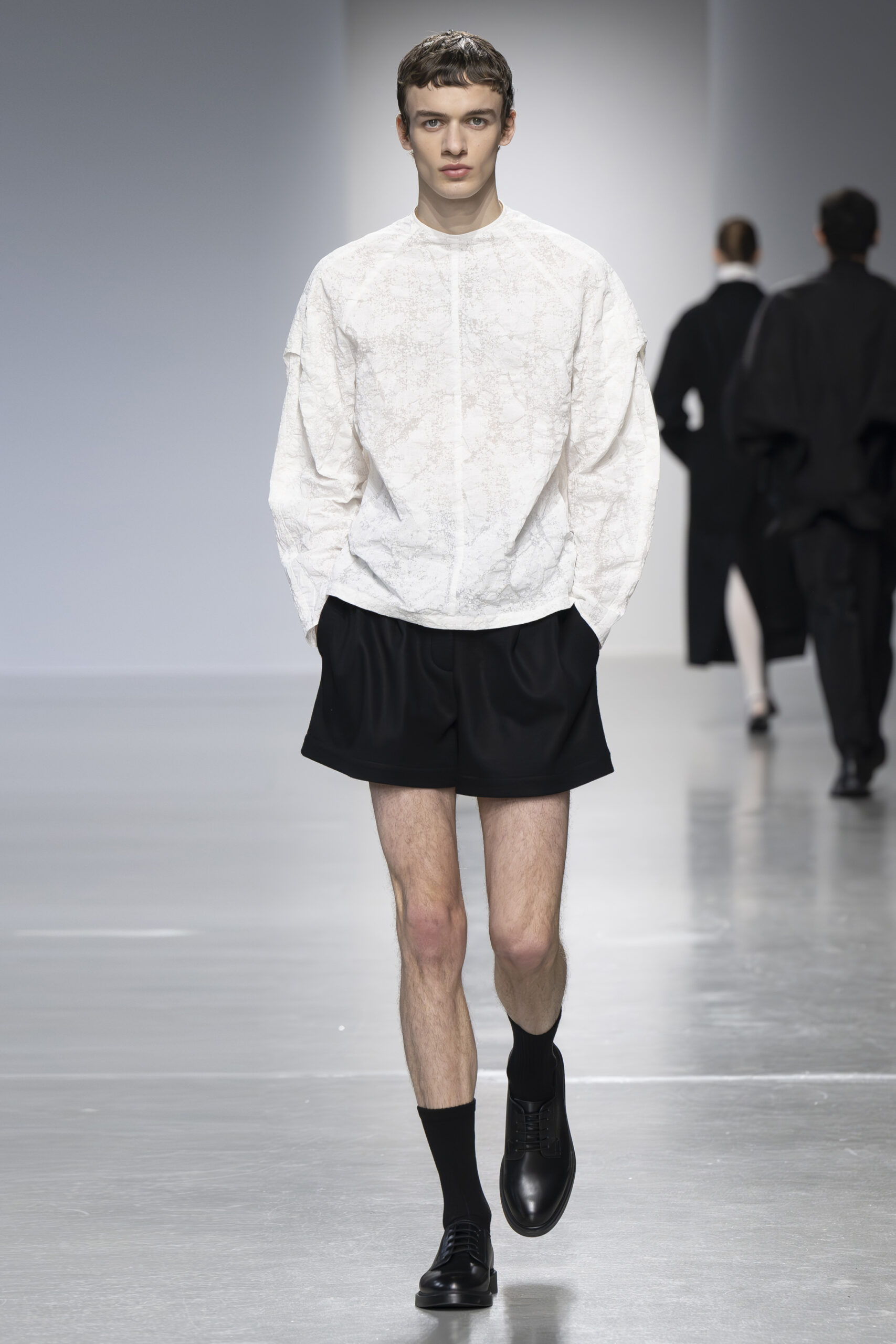 The looks, largely monochromatic or dichromatic, possessed both masculine ferocity and feminine aloofness. Armor-like textures danced across knits. Structured shoulders and billowing waistlines were as unapproachable as they were elegant, enchanting but also warning guests to stay at a healthy distance. As envisioned by Dawei, one of the protagonists of the collection was an Upper East Side girl attending a gallery opening in Chelsea, “without any trace of enduring the hardships of a long journey.”