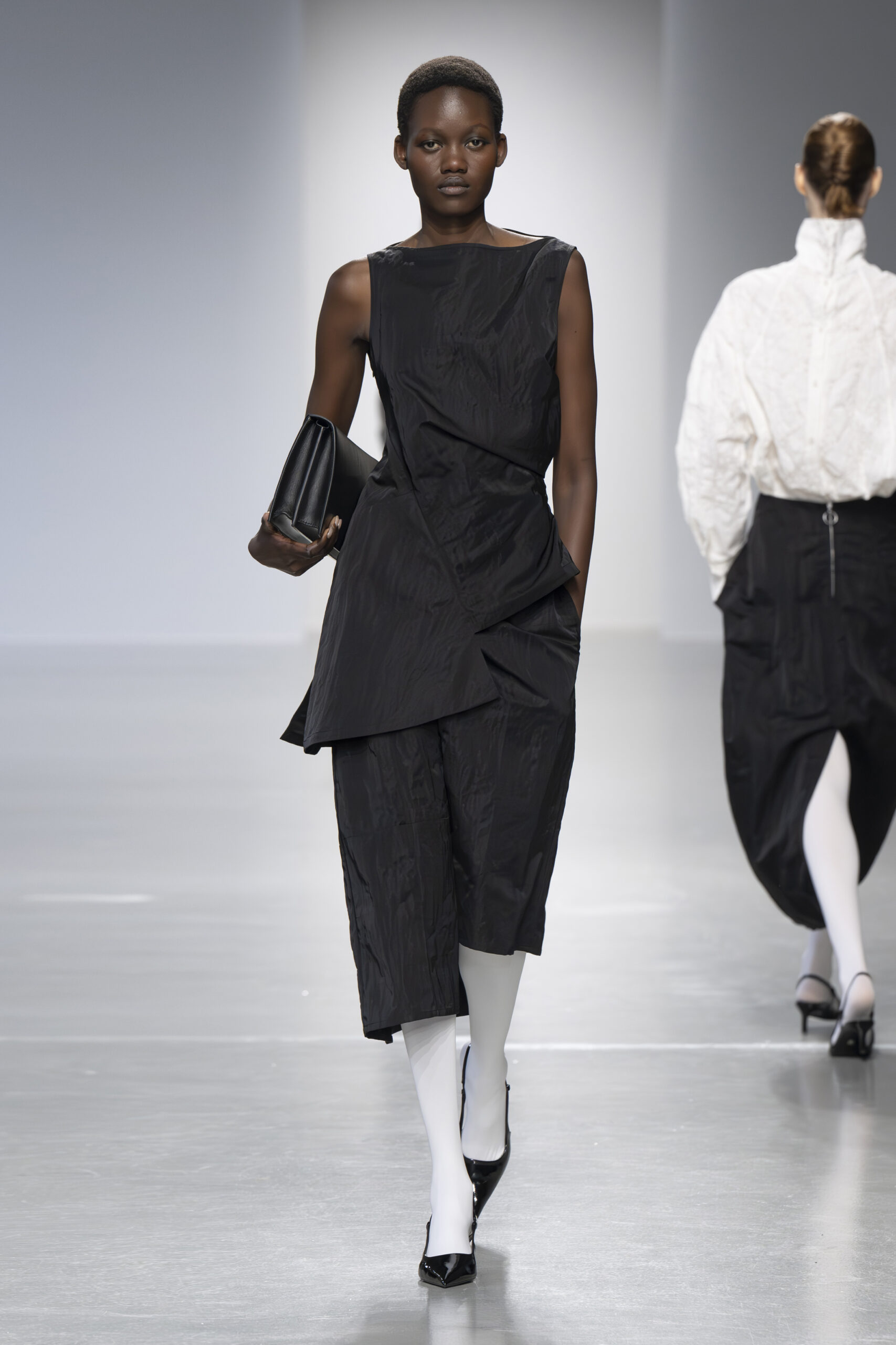From the glamor of modern New York to the refined grit of ’90s Milan to the elegance of postwar Paris, Dawei took guests on a journey through the greatest global fashion capitals for Fall/Winter 24/25. Gracefully linking eras and cities, the China-born brand, Dawei, proposed clothes for the contemporary woman who is equally comfortable conversing at an art gallery, a ball, or, a smoky discotheque. Sleek silhouettes and a more powerful color palette than we’ve seen from Dawei in recent seasons, defined a collection that launched the brand into a new era while simultaneously maintaining the “form follows function” ethos central to its DNA.