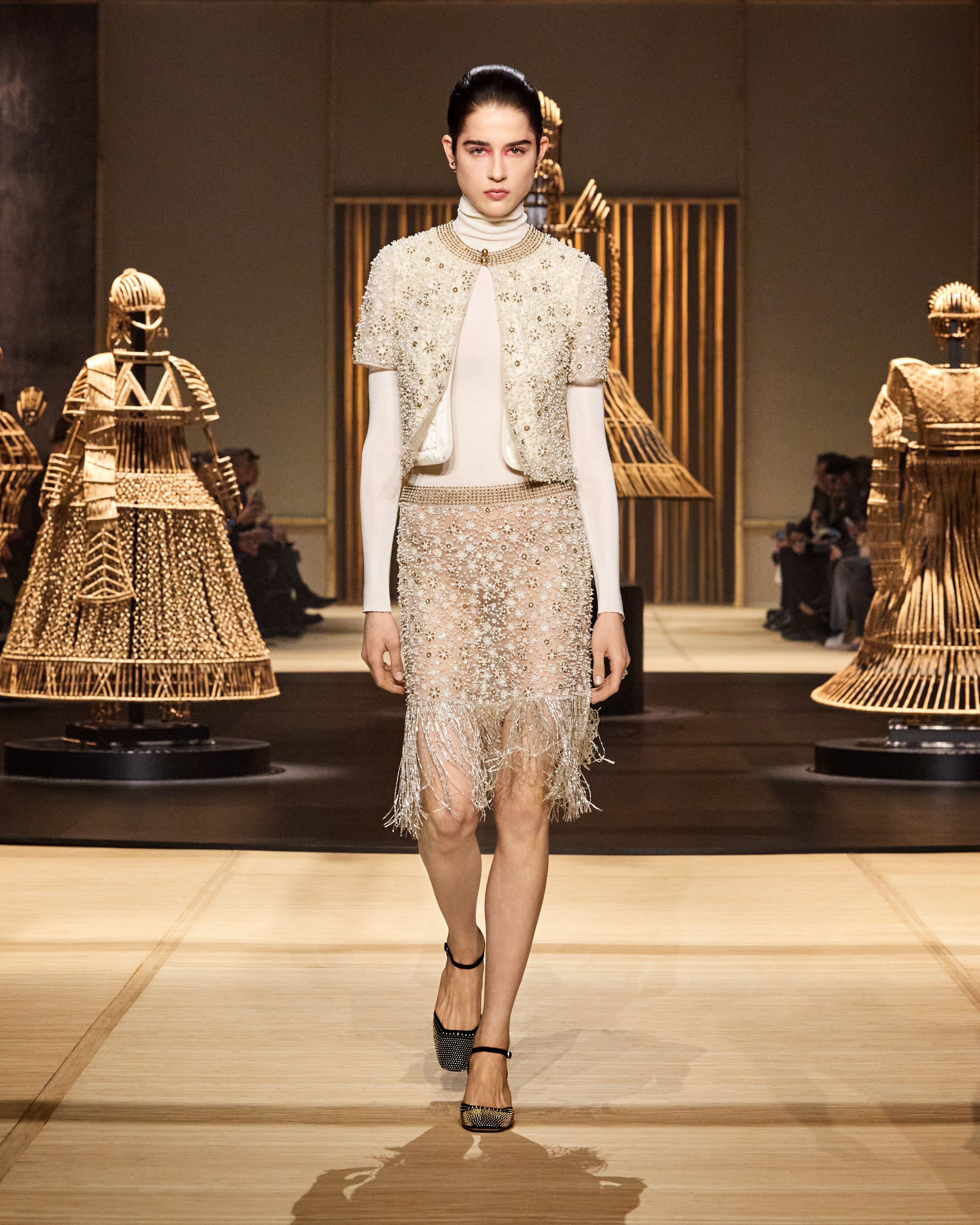Chiuri’s Autumn-Winter 2024-2025 collection unfurls a global narrative, interlacing cultural threads from across continents. The incorporation of Shakuntala Kulkarni’s cane art is a vibrant affirmation of Dior’s commitment to marrying time-honored craftsmanship with modern aesthetics, celebrating empowerment and liberation through fashion.