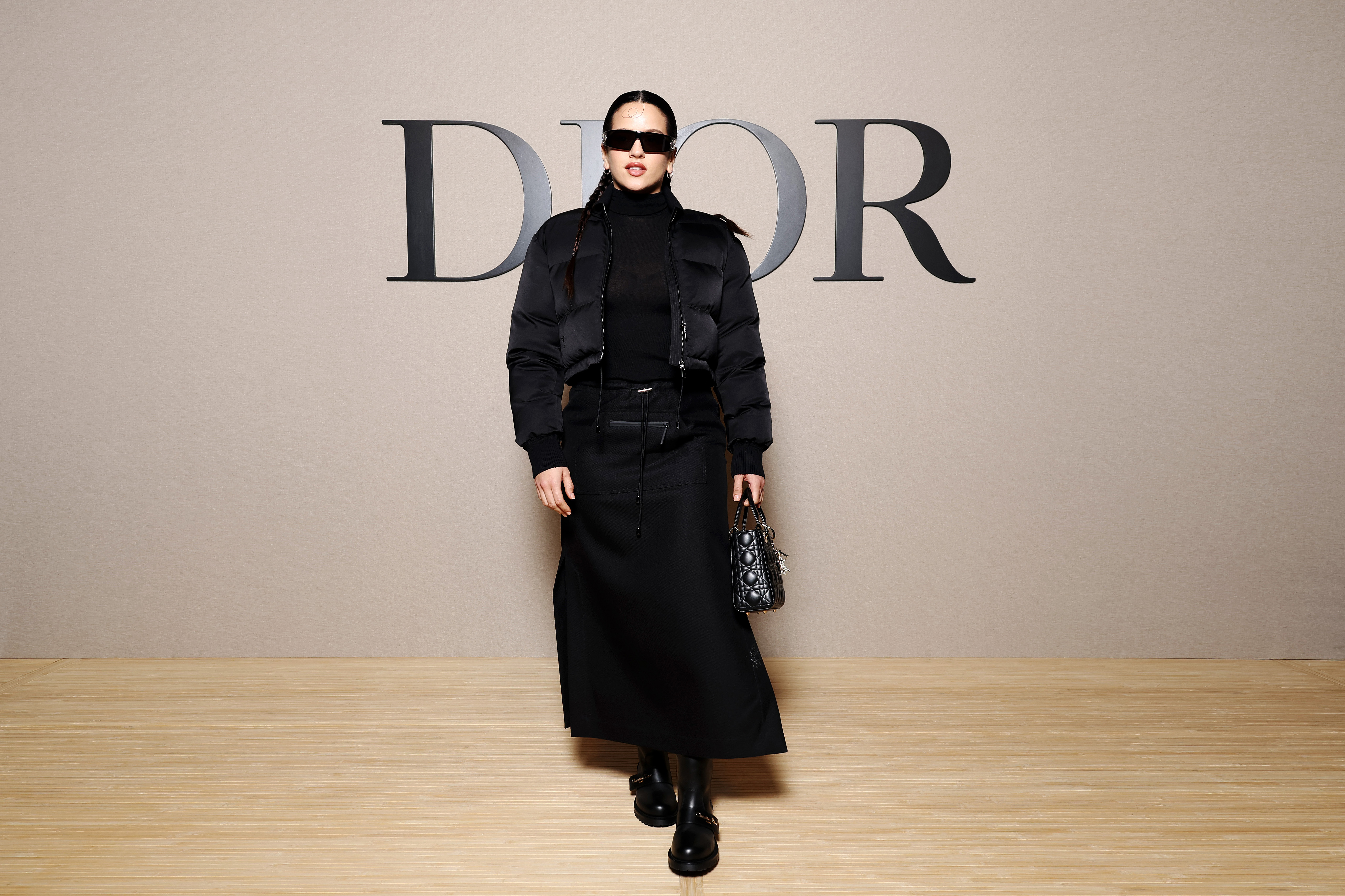 Rosalía infuses bold textures and layers into her all-black Dior ensemble, striking a chord with the brand’s vision of modern chic at Paris Fashion Week. (Photo by Pascal Le Segretain/Getty Images for Christian Dior)