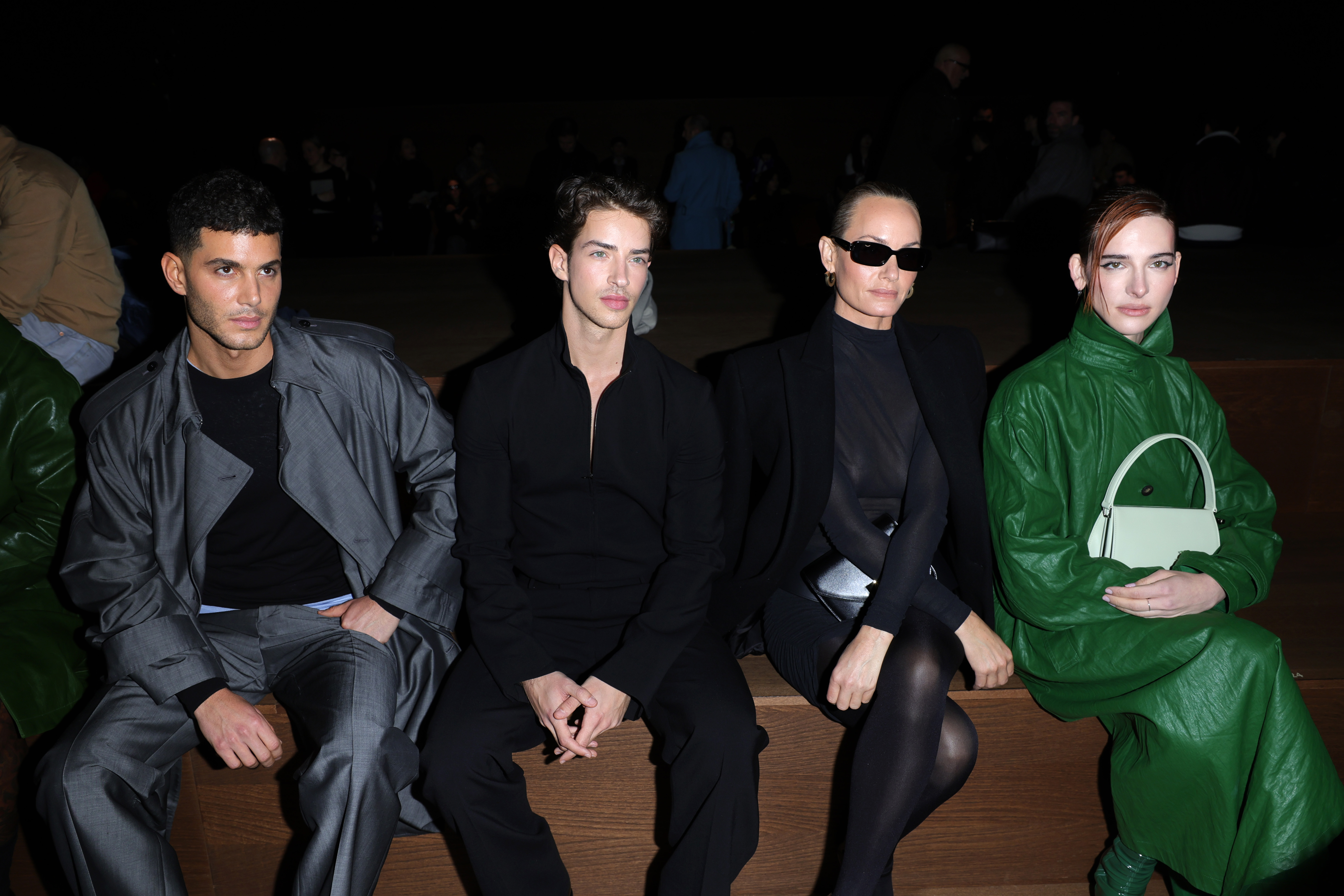 (L-R) Fai Khadra, Manu Rios, Amber Valletta and Hari Nef attend the Ferragamo Fall Winter 2024 fashion show during the Milan Fashion Week Womenswear Fall/Winter 2024-2025 on February 24, 2024 in Milan, Italy. (Photo by Jacopo M. Raule/Getty Images for Ferragamo)