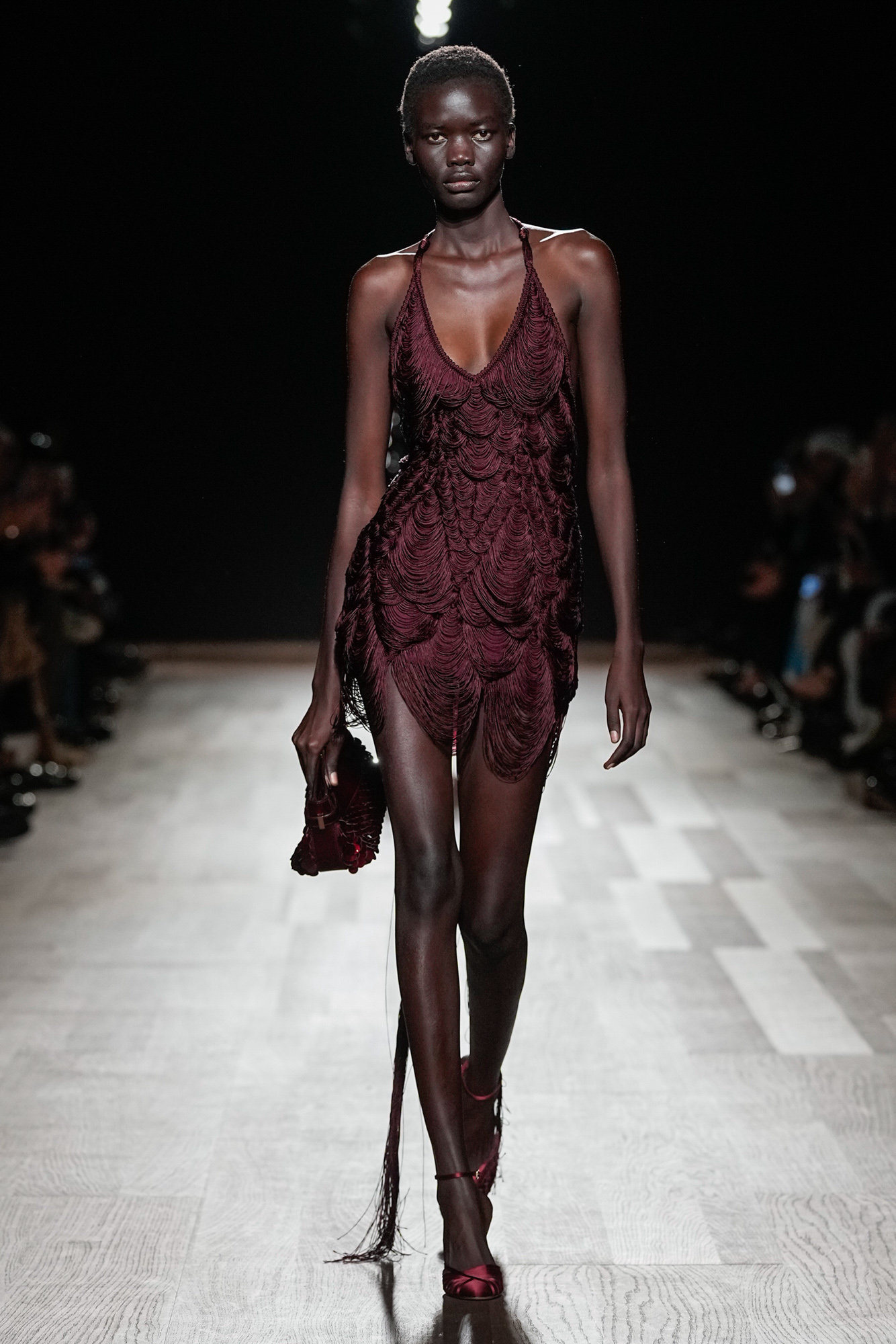 Upon taking the reins at Ferragamo, British designer Maximilian Davis has swiftly garnered acclaim for infusing the brand with a fresh and daringly elegant aesthetic. With the AW24 collection, Davis ventures into the heart of the 1920s—a time renowned for its radical shift towards freedom and flamboyance in fashion. He skillfully weaves together elements emblematic of the era, such as elevated hems, flowing fabrics, and relaxed, yet refined silhouettes, crafting a collection that resonates with the vibrant spirit and daring innovation of the Roaring Twenties.