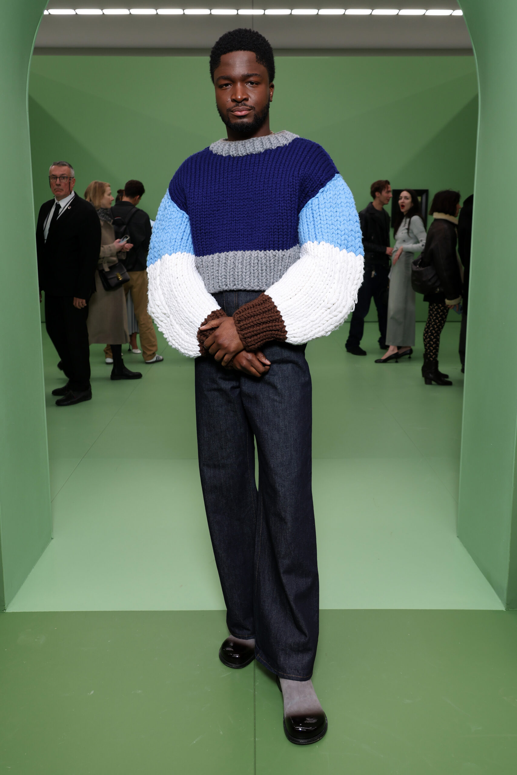 Amidst the verdant hues of a labyrinthine garden, LOEWE unveiled its Fall/Winter 2024 collection at Paris Fashion Week, a spectacle that can only be described as a contemporary Eden. The venue, a maze-like art gallery bathed in gradients of green, served as the perfect tableau for Jonathan Anderson’s latest creations, engaging in a visual dialogue with Albert York’s pastoral and idyllic landscapes. The setting transcended mere backdrop, becoming an invitation to a world where the artistry of York’s paintings inspired the collection’s prints, allowing art, nature, and fashion to converse in harmonious dialect.