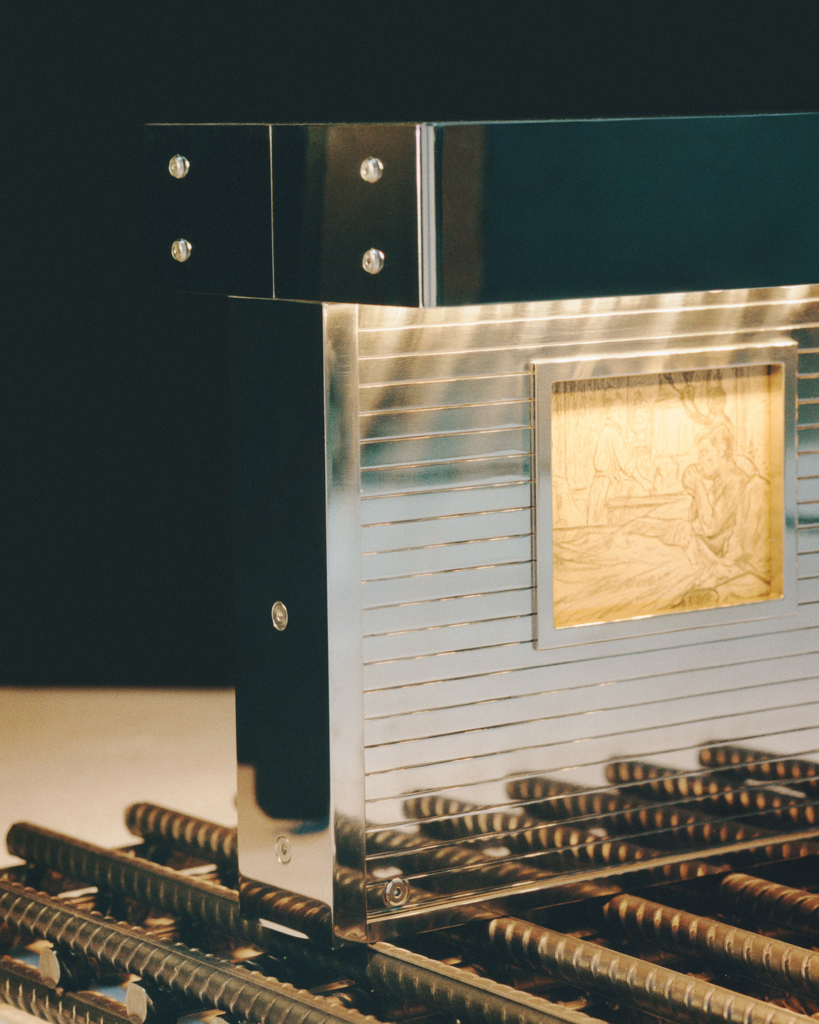 Highlights include Genta Ishizuka’s amorphous, lacquer-finished organic cell that utilizes his signature urushi lacquer technique, with layers stripped back to reveal glimmers of gold finishing that enhance the gentle glow emanating from within. Enrico David’s table lamp encapsulates his interest in the human form as a site of metamorphosis, resembling a standing arched figure with its face silhouetted against an illuminated onyx disc. Zizipho Poswa’s standing lamp, composed of ceramic, glass and bronze, takes the form of a hand-coiled vessel propping up a bowl of lit orbs – a nod to the coiled pot-making traditions of her Xhosa heritage.