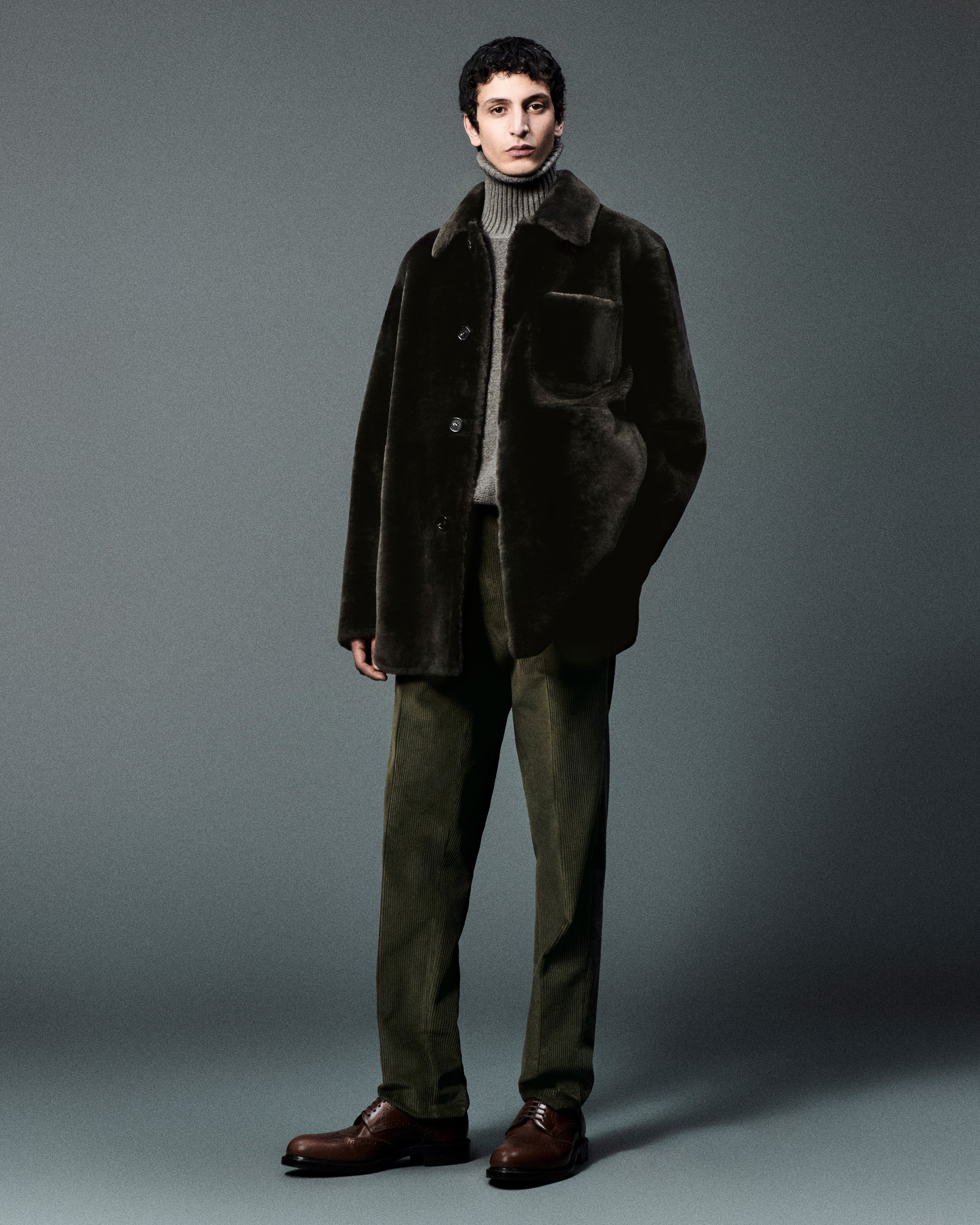 The assortment features an array of field jackets, sleek bombers, versatile multi-pocket vests, and intricately knit wool fur shirt-jackets, each emanating a sense of pragmatic elegance with their detailed textures and thoughtful design. The collection’s soft tailoring adapts to various occasions, with evening wear featuring single and double-breasted tuxedos and sumptuous shearling coats, where silk turtlenecks and stand-up collar Spagna shirts offer a modern twist to traditional formal attire.