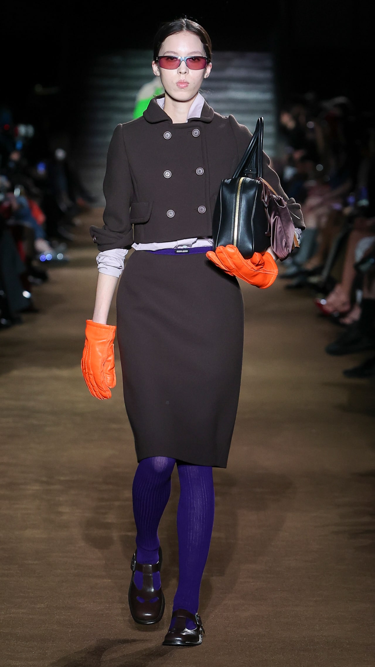 Miuccia Prada’s Miu Miu Fall/Winter 2024 collection, held in Palais d’Iéna, examines the dichotomy between dressing in childhood and adulthood, pulling from different periods of people’s lives and how it is translated into their clothes. In line with this theme, people of all ages came down the runway. Miuccia Prada says in the show notes, ‘This collection is about life – about experiences, expressing that through clothes. There is a whole space between childhood and adulthood that is fascinating to me – it is when your character is formed. This is a collection about those personal, individual moments.’