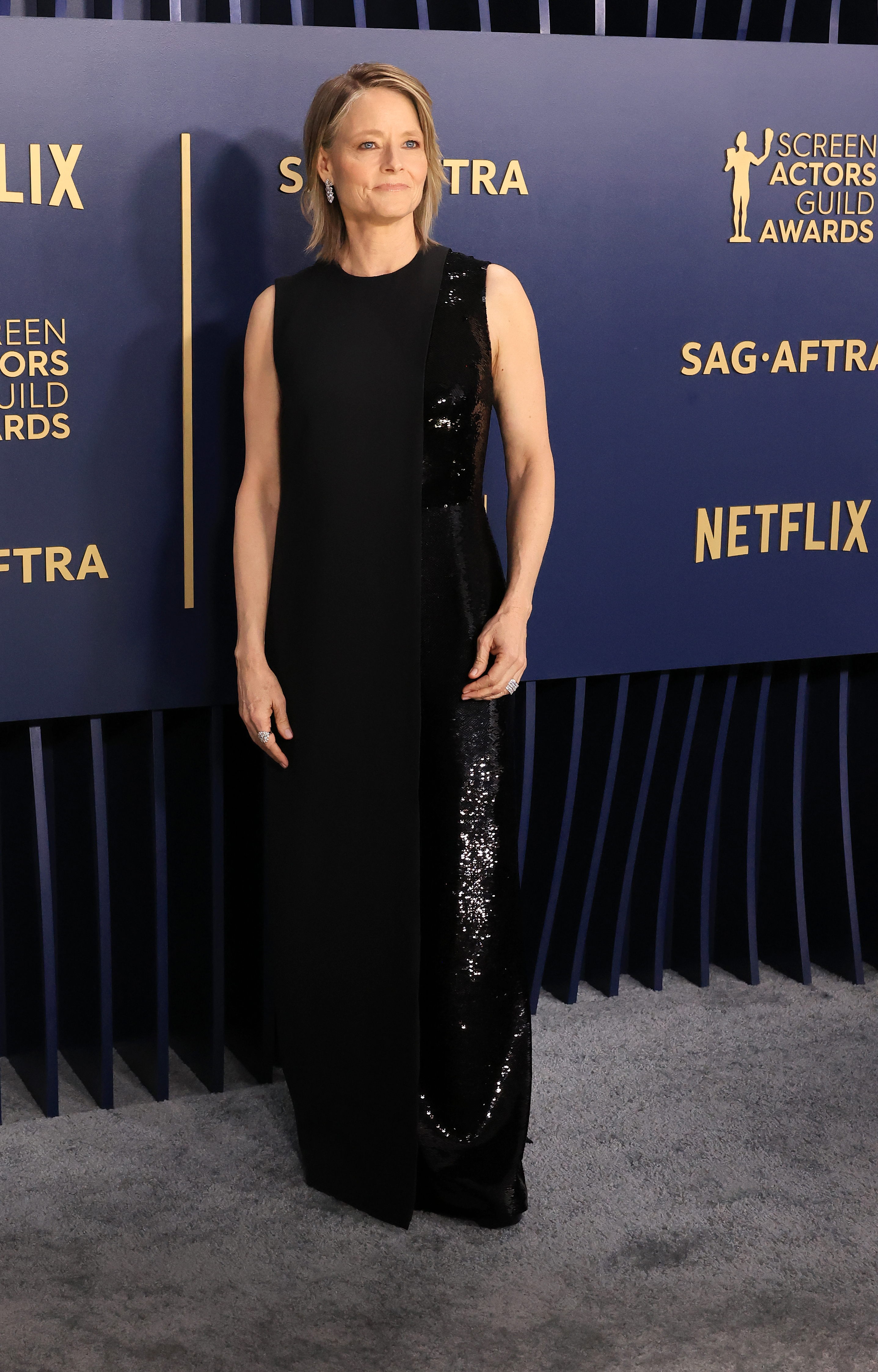 Jodie Foster arriving on the red carpet at the 30th Screen Actors Guild Awards in Shrine Auditorium and Expo Hall in Los Angeles, CA, Saturday, Feb. 24, 2024. (Brian van der Brug / Los Angeles Times via Getty Images)