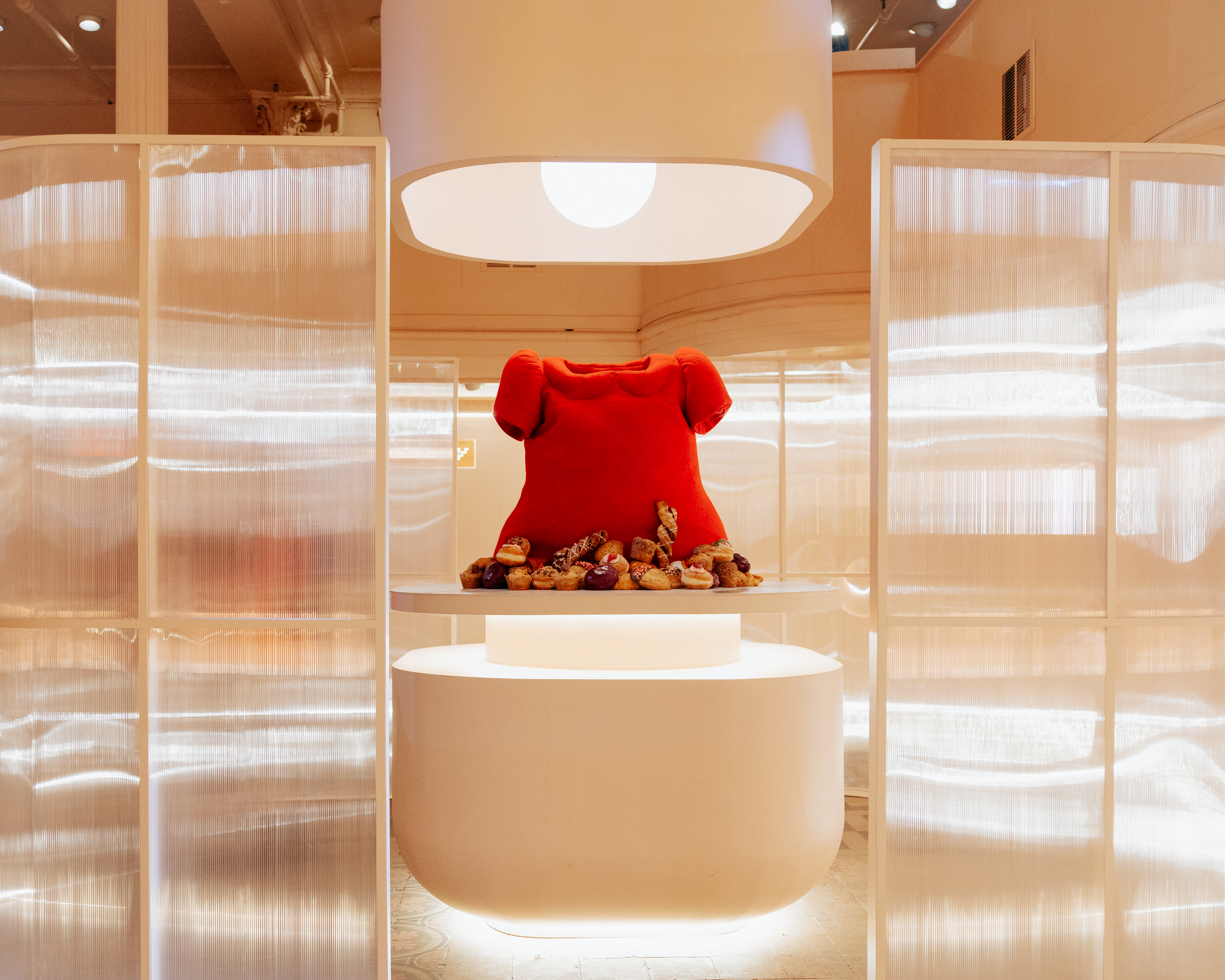 Pipenco’s Ready-to-Wear runway show was presented following the end of New York Fashion Week, seemingly to satisfy the leftover cravings of NYC’s fashion lovers both figuratively and literally. Upon arrival, guests were greeted by the smell of coffee while drawn to a sculpturesque Red Dress surrounded by pastries and sweets.