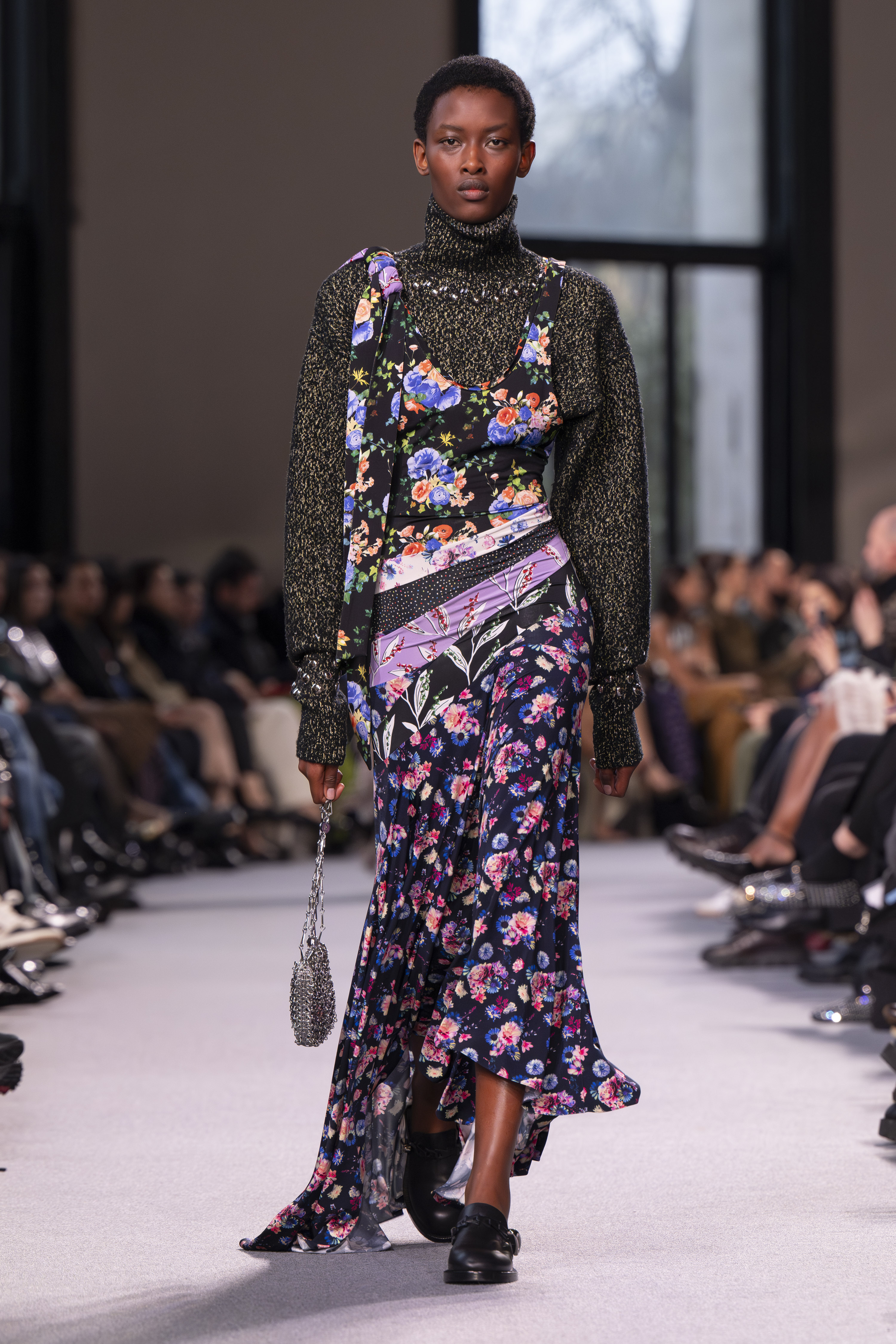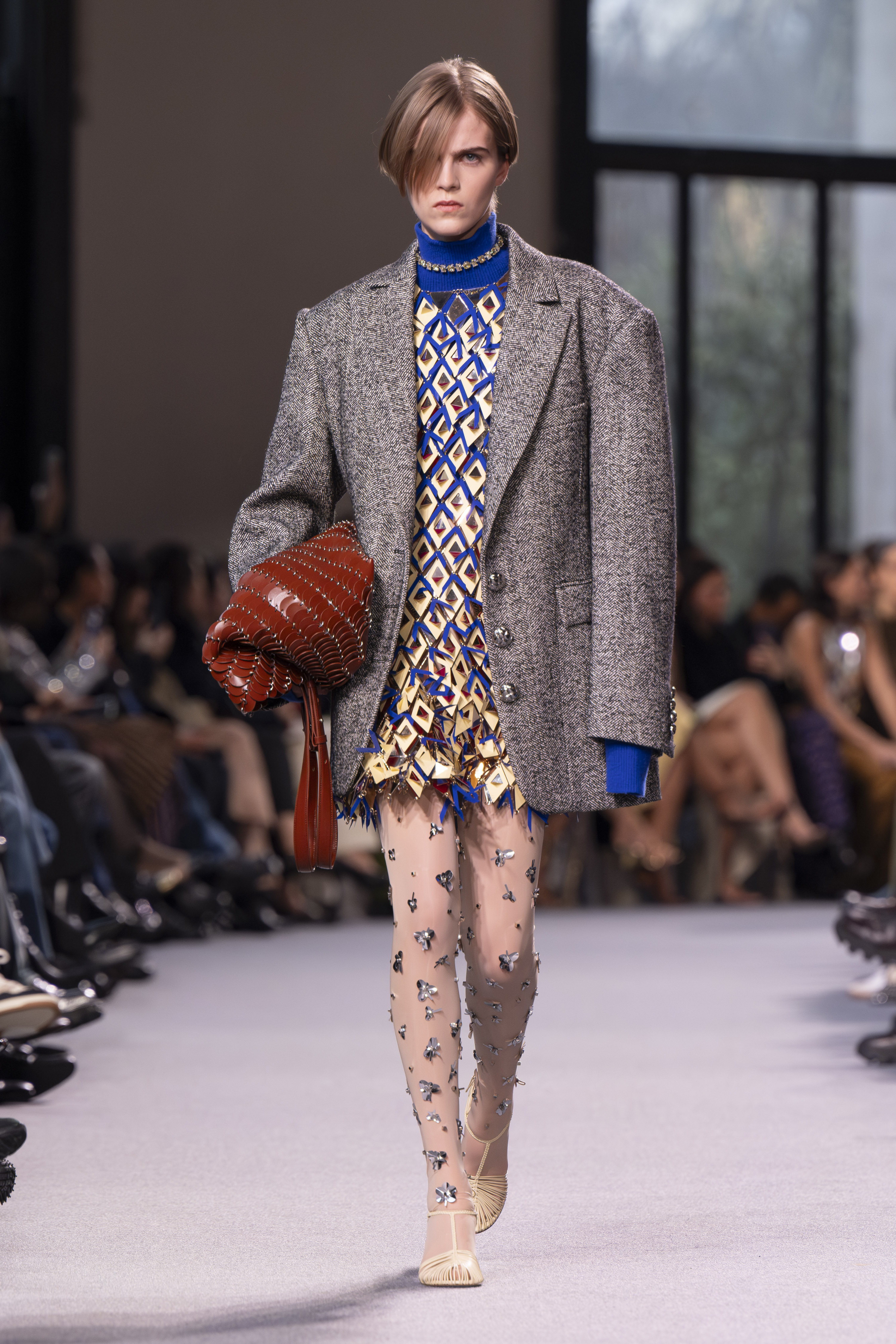In the vibrant atmosphere of Paris Fashion Week, Rabanne‘s Fall/Winter 2024-2025 collection unfolded as a captivating narrative of individuality and the sophistication of fashion. Under the ingenious direction of Julien Dossena, Rabanne transcended the conventional wardrobe to present an intimate dialogue on personal identity, seamlessly interweaving the allure of everyday glamour with the extraordinary fabric of self-expression.
