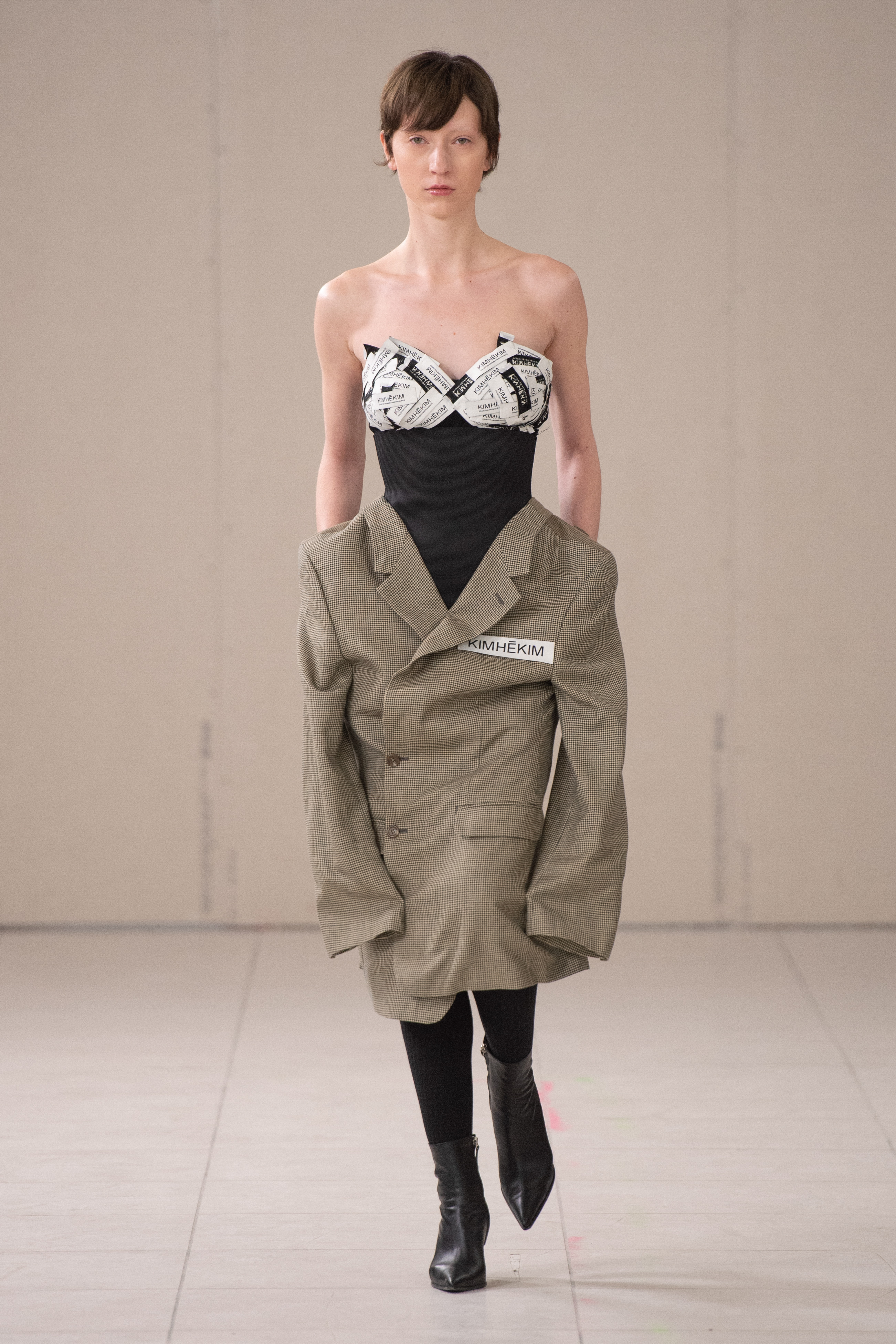 Rooted in a vision both romantic and revolutionary, KIMHĒKIM’s creative team ventured into the vintage markets of Seoul to curate a collection that echoes the city’s rich fashion legacy. By transforming upcycled gems into a tapestry of narratives, the collection pairs sculpted jackets with pearl tear-drop sunglasses in an eclectic fusion, redefining the essence of contemporary timelessness.