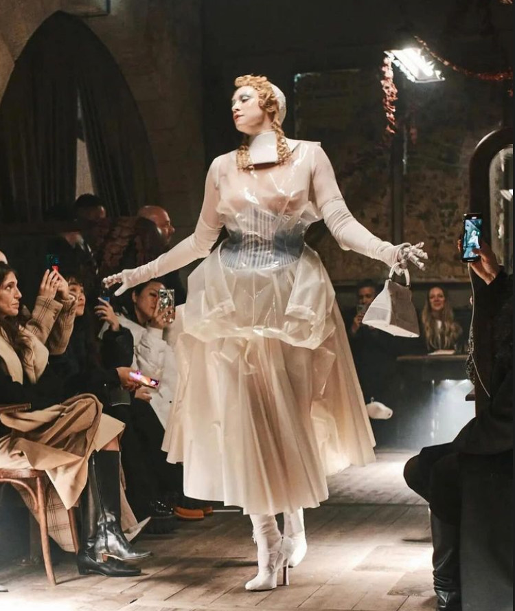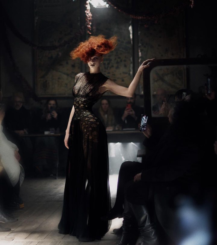 What is Galliano trying to hide? What is he trying to show? We can’t really know – all we know is that the balance between mystery and revelation in the clothing, the models’ presence, and the obscure place kept drawing us fully in. Closed by actress Gwendoline Christie in a latex corset dress, the show’s grand finale summarizes the mix of history, cinema, theater, music, Pat McGrath’s blurred porcelain doll makeup, and Galliano’s striking Victorian tone that created such an unconventional and provocative show. Considered a historical relic that could never exist in the present, the Maison Margiela show has restored the faith of fashionistas while revealing a truth that may be hard to digest.