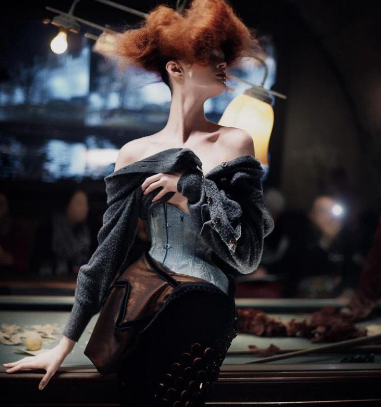 This imprisonment is more than just the simple clothing but also the failed attempts at social engagement. With many labels’ current focus on generating clicks, likes, views, and shares on various platforms, the luxury industry is now too commercialized, not taking into account the essence of art and the creative process. Fashion commentator SOFIssticated states on Twitter, “The designer brought back the excitement and joy one could feel at pre-iPhone and pre-social media shows, where the viewer was immersed in the clothes and the feeling—instead of creating content.” That’s what it was. It was all about the clothes. While Galliano muses glanced at the messy, dark café runway, no one could bother to care about recording this, posting that – just observing and appreciating the most out of the experience that the garments offered.
