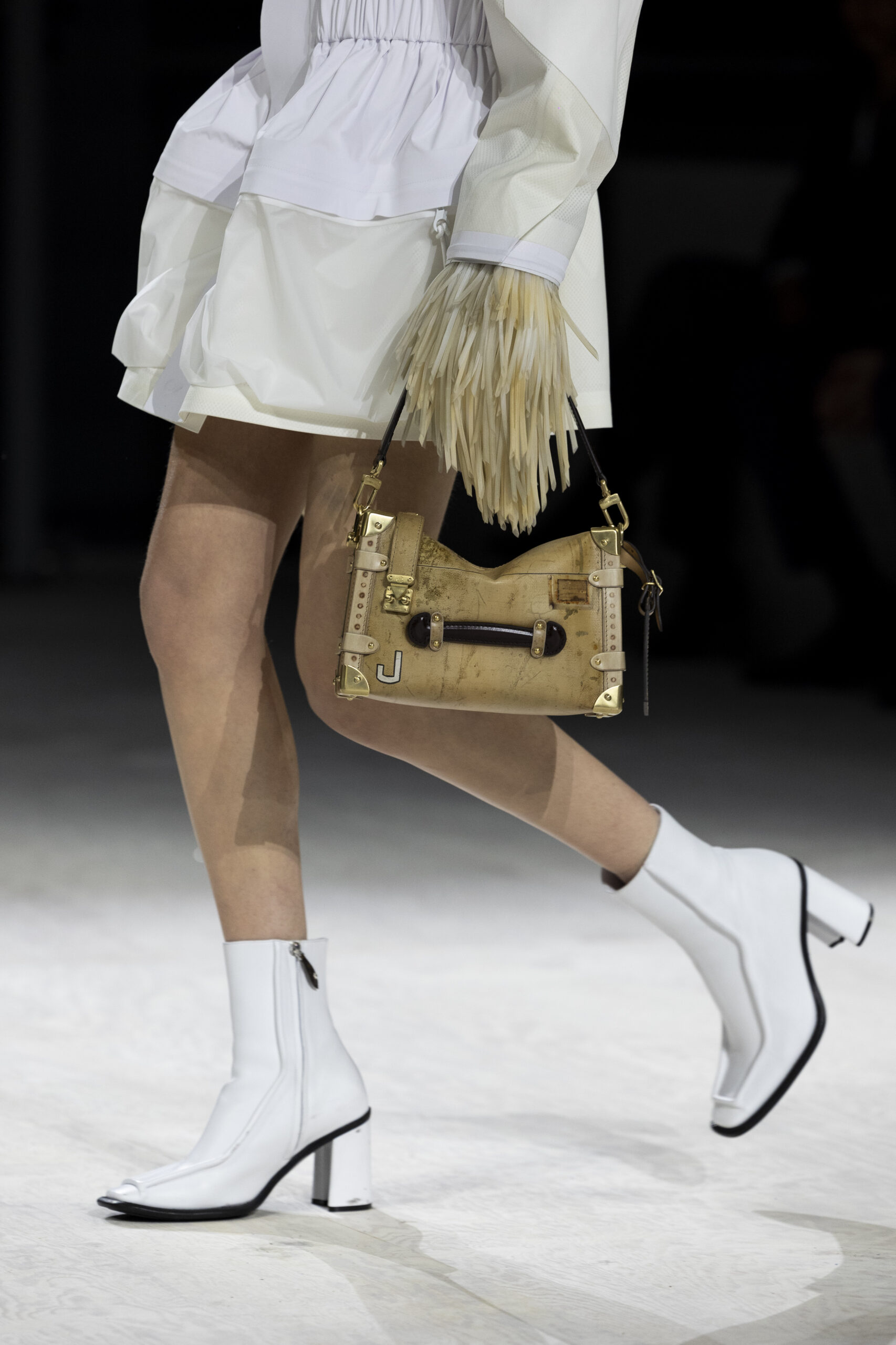 Louis Vuitton’s legendary craftsmanship, globally recognized for its ubiquitous bags, belts, and luggage, which are central to the brand’s DNA, was consistently recalled by this Ready-to-Wear collection. Some dresses featured prints illustrating the intricate details of certain bags; and indeed were proposed in silhouettes that mirrored such bags’ shape. The bags themselves were stellar, as elegant blues and beiges, most notably the shade “gris trianon,” an archival hue from 19th Century trunks, complemented the dresses on the runway and added some pastel personality to aristocratic looks. Deceptive deconstruction was a theme throughout the collection, as subtle fringes and finishings that walked a tightrope between rugged aplomb and quiet luxury.
