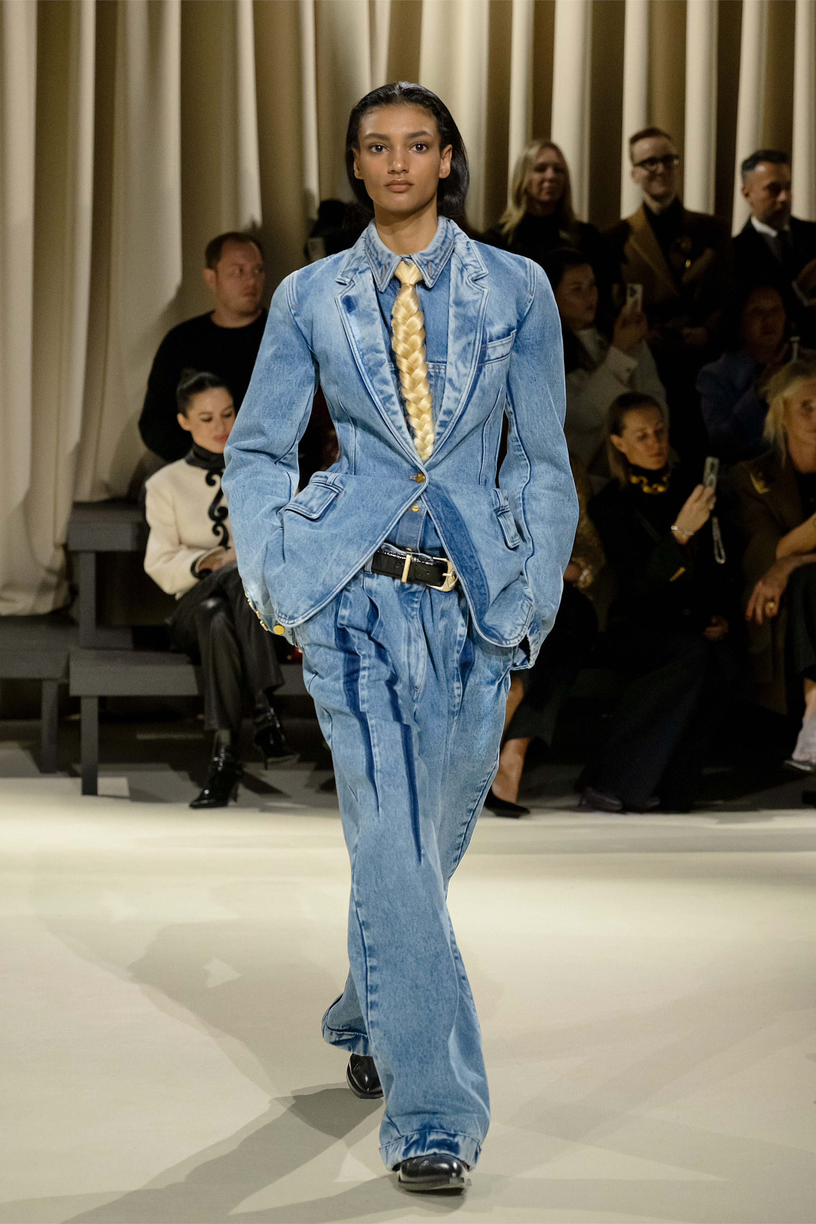 Each detail across the collection was impeccably and meticulously chosen. Roseberry eschewed a standardized approach to fastenings and trimmings, leaving no seam neglected or button unconsidered in ensuring that individual components of each garment were as memorable and as powerful in advancing the narrative of the collection, as the whole that they comprised. He even caused us to reconsider the versatility of classic materials, most notably by incorporating supple and delicate fringes in a short denim shirt.