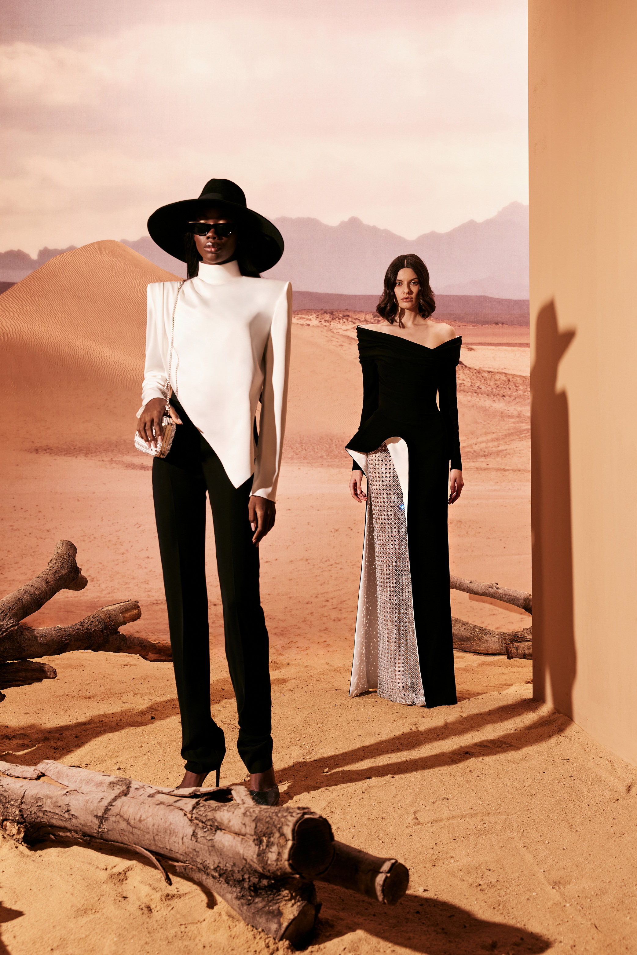 Volume and shape are central to this collection, reminiscent of the wind-driven sands of the Sahara. The garments feature a balance between flow and structure, with kimono-like midi-dresses accented by oversized pockets, which bridge the gap between utility and elegance.