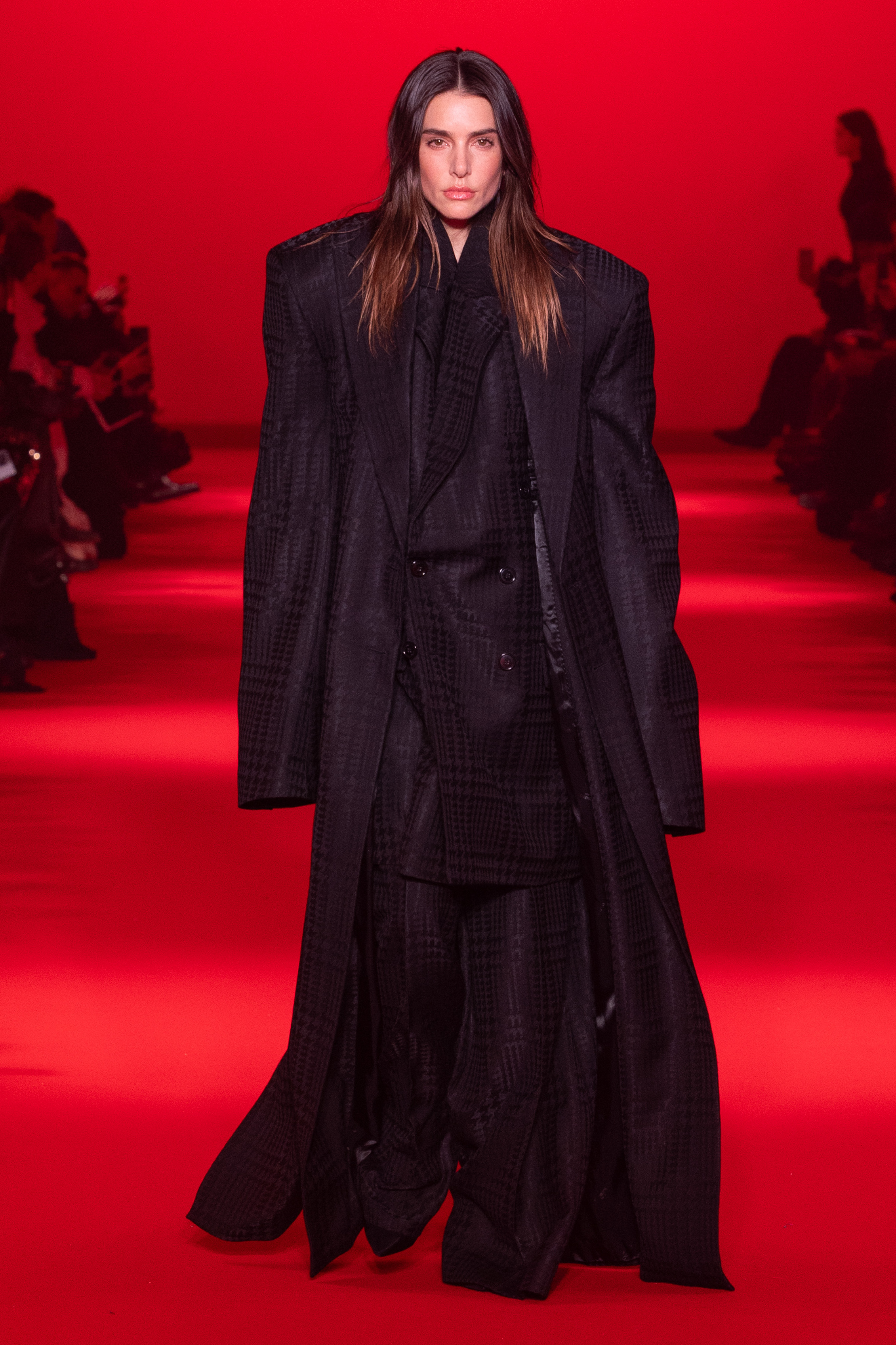 Vetements’ FW24 show was an illustrious affair, with the front row dotted with the likes of cultural titans Michelle Lamy, J Balvin, and Cher, whose attendance alone was a nod to the brand’s cult status. The runway was also a star in its own right, with figures such as Alton Mason and Anwar Hadid lending their strut to Vetements’ irreverent vision.