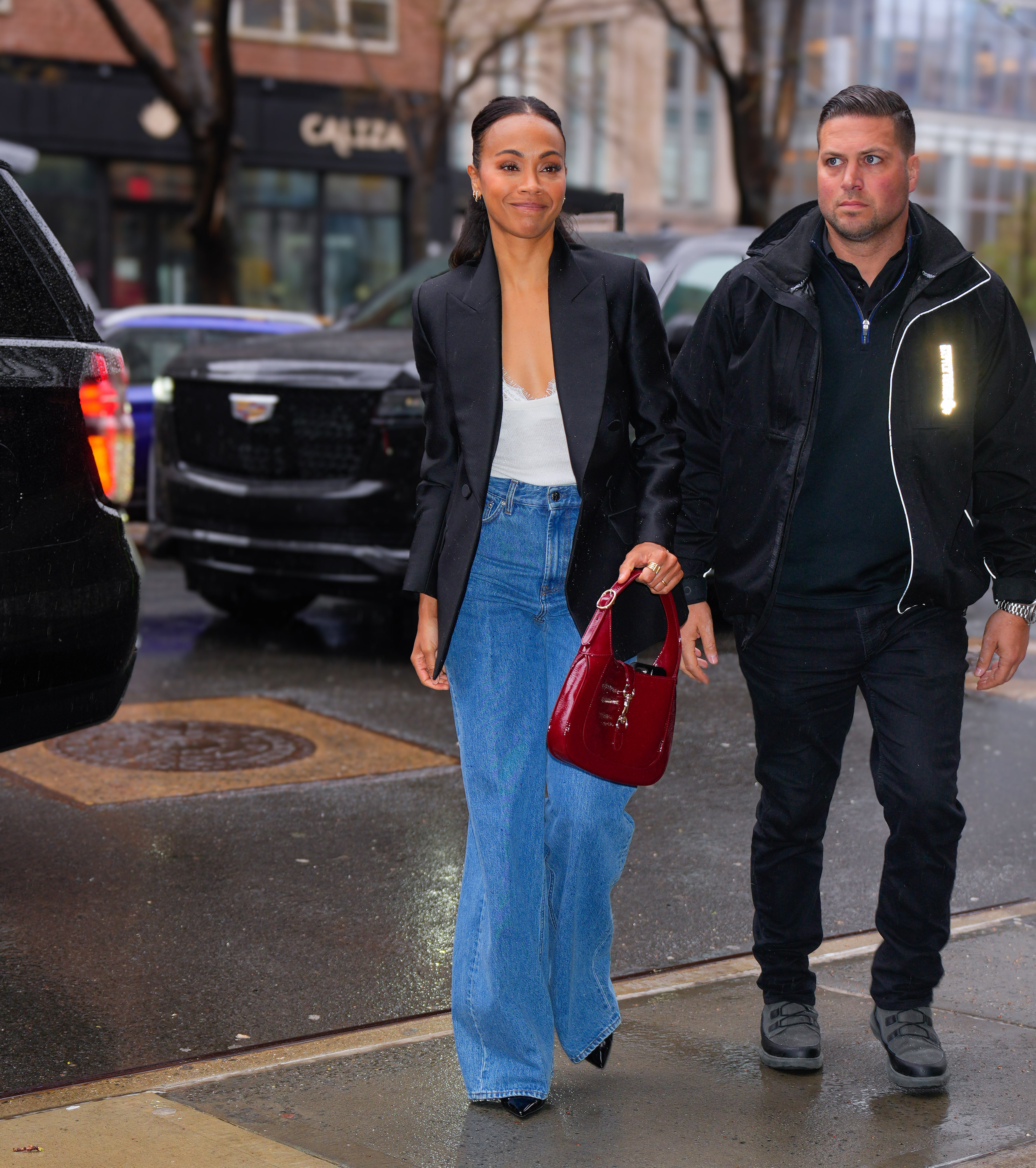 Captured on March 28, 2024, Zoe Saldaña radiates effortless style in the heart of New York City. (Photo courtesy of Gotham/GC Images)